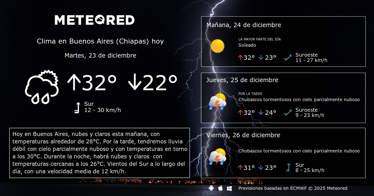 Los datos sobre el tiempo, temperatura, velocidad del viento, la humedad, la cota de nieve, presión tiempo en buenos aires clima buenos aires. Summers are hot and humid with frequent thunderstorms while winters are cool and drier with frosts that occurs.