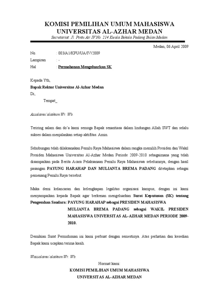 Melalui surat ini saya mengajukan permohonan mutasi (pindah tugas) dari dinas pendidikan pemerintah kabupaten buleleng ke pemerintah daerah kabupaten tabanan, bali. Surat permohonan sendiri dapat bersifat resmi atau pun tidak resmi. Home » cara membuat surat » contoh surat keterangan pengangkatan pengurus osis. Maka dari itu kami mengajukan permohonan sk ukm lembaga dakwah kampus raudlatul muttaqin pada kepengurusan yang baru yaitu kepengurusan 2014/2015. Ada beberapa istilah sejenis atau nama lain dari surat keputusan (sk) pengurus masjid ini, diantaranya