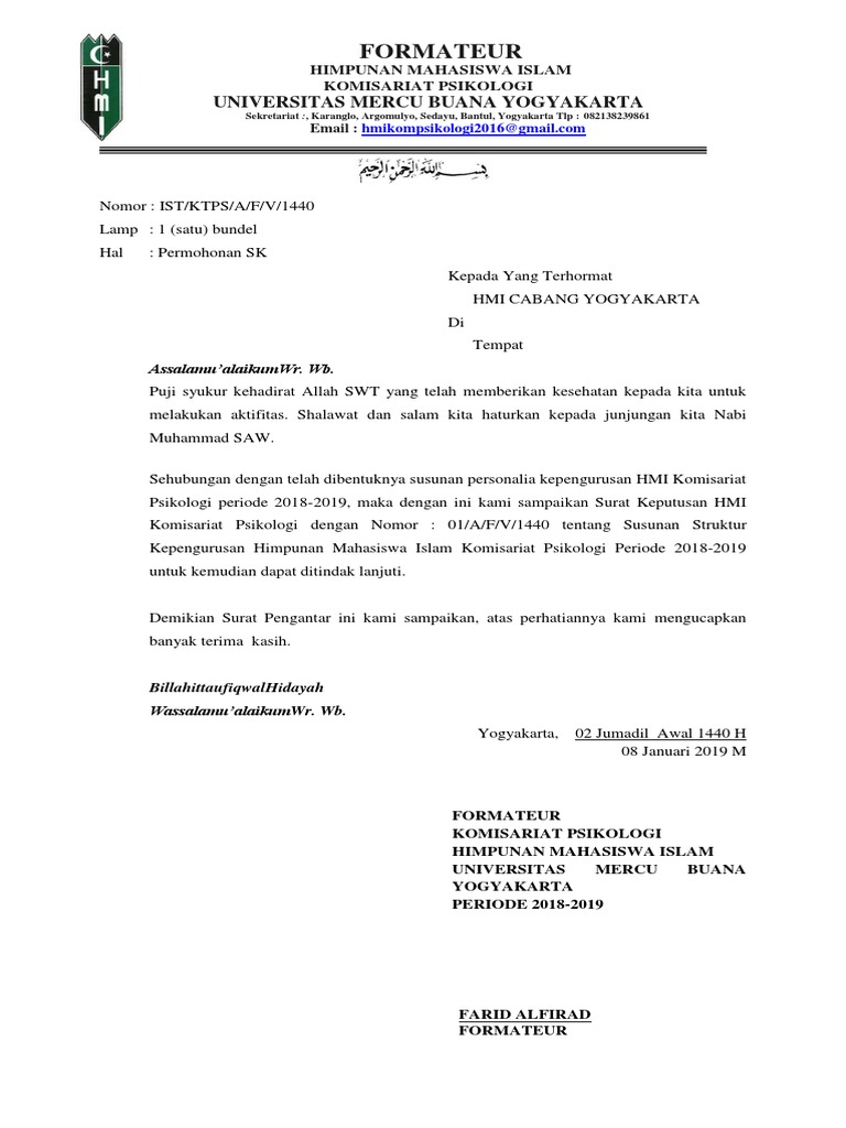 Contoh Surat Permohonan Sk Pengurus - Masjid Raudhatul Jannah Griya Mulya Asri Makassar / Permohonan nama 1 2 3 4 jabatan ketua yayasan pengurus yayasan pengurus yayasan pengurus yayasan.. Maka dari itu kami mengajukan permohonan sk ukm lembaga dakwah kampus raudlatul muttaqin pada kepengurusan yang baru yaitu kepengurusan 2014/2015. Berikut ini adalah contoh surat permohonan pelunasan hutang melalui kta/kredit tanpa agunan. Contoh surat permohonan dana #2. Berita undangan upacara hari pendidikan nasional uny fakultas. Sedangkan untuk menulis sebuah surat permohonan izin kegiatan yang baik dan benar serta resmi, untuk contoh surat.